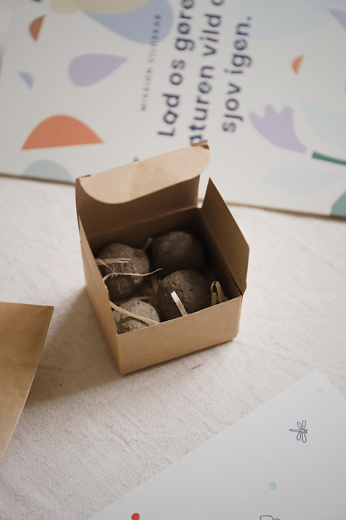- ½ dl. blomster-frø (fx kornblomst, morgenfrue, honningurt, jomfru i det grønne og valmue - eller en færdigblandet frøpose)