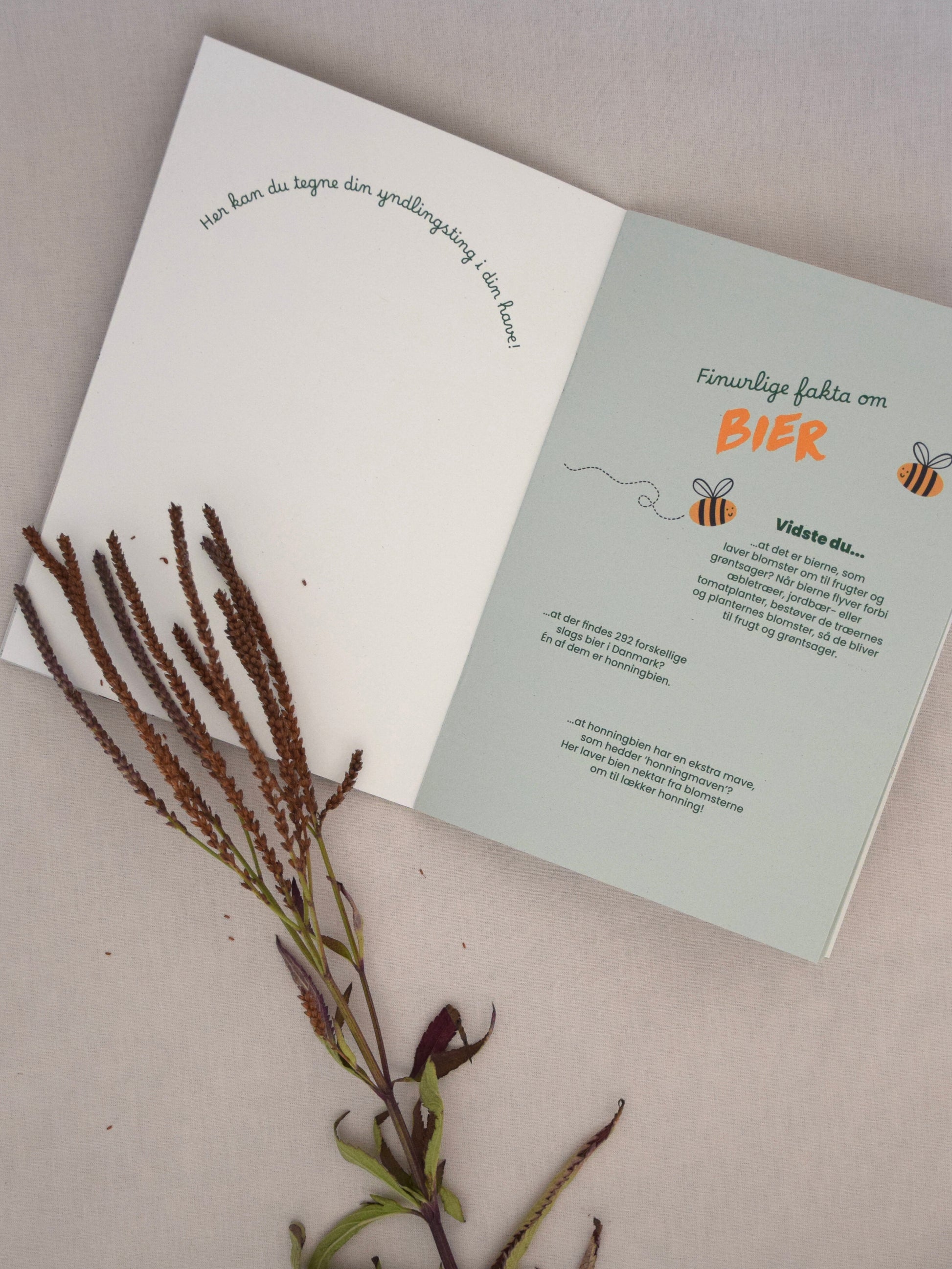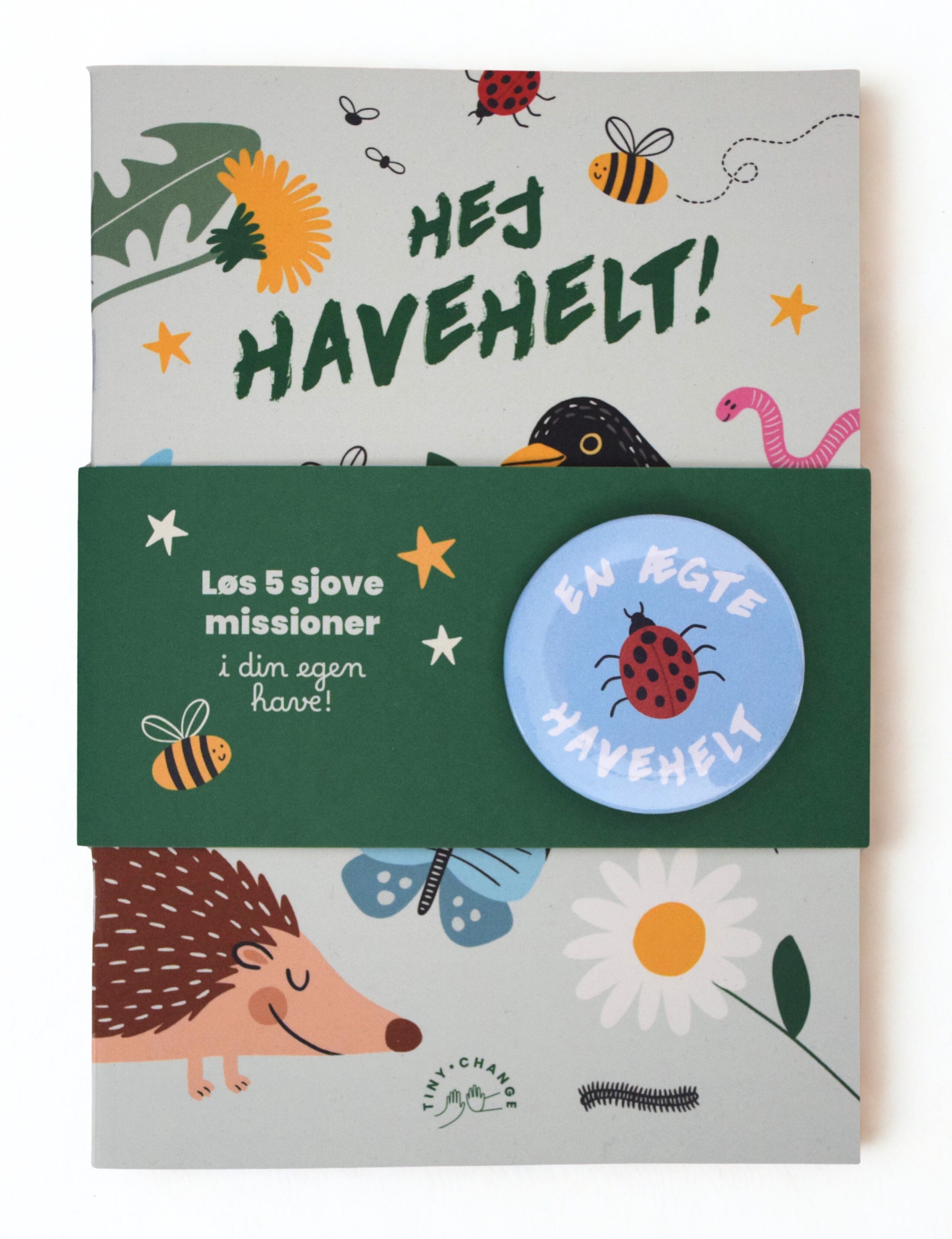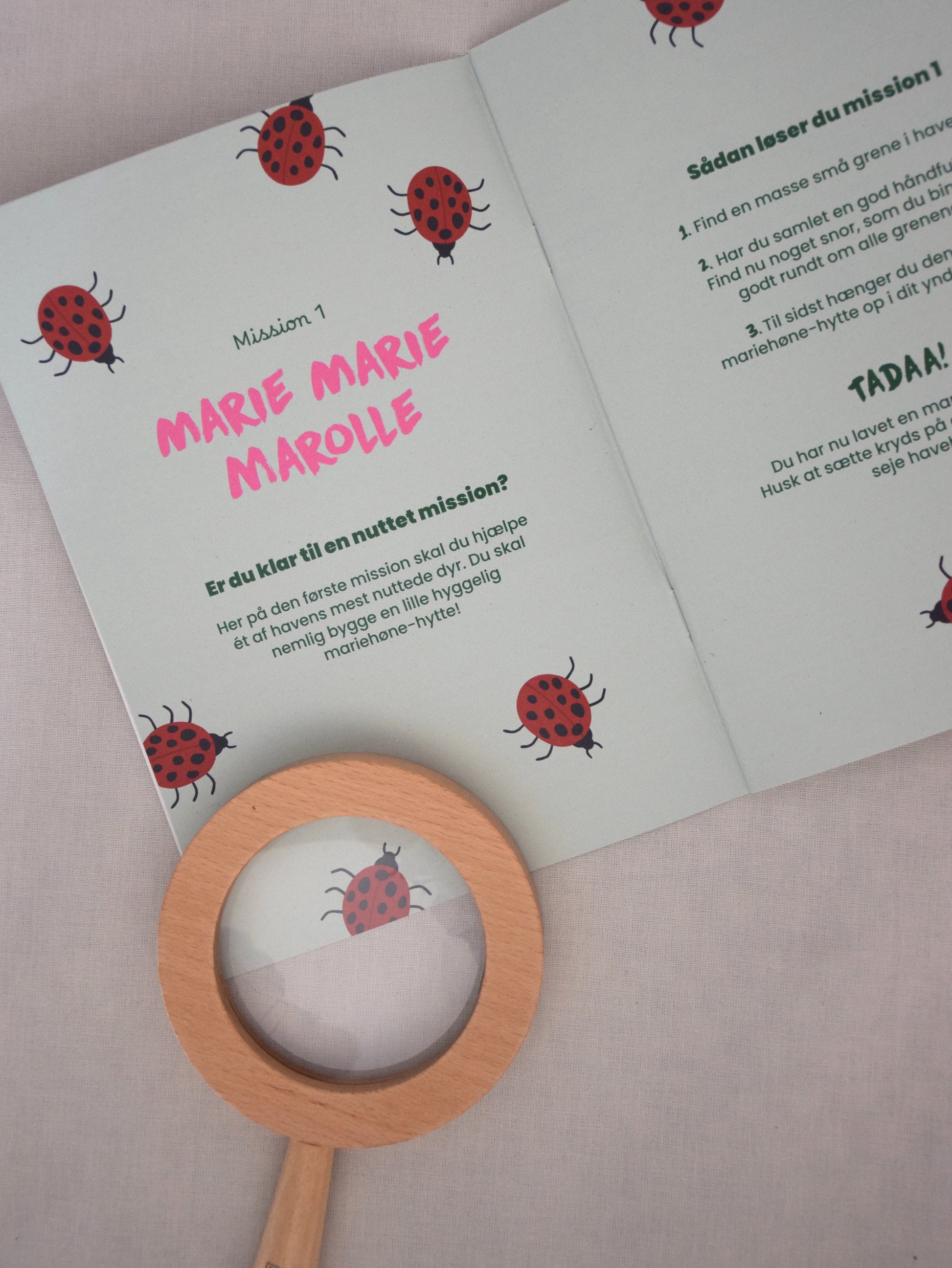 1 x missionsbog med 5 natur-missioner og en masse idéer til lege og aktiviteter i haven